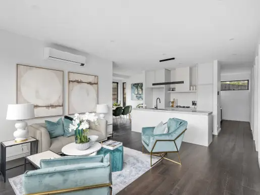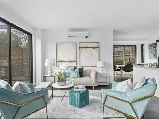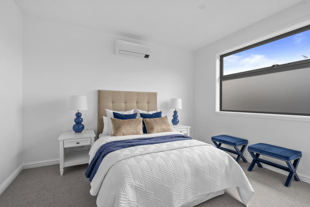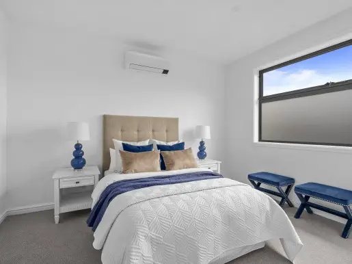 Luxuriously appointed with high-quality double-glazed windows, mesh flyscreens, engineered timber flooring, 100% wool carpet and high-speed data connections, appreciate the comfort of split system air-conditioners in the living zones and bedrooms.