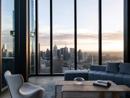The resident only amenities offer a host of luxurious spaces at Melbourne Square. This includes a sweeping resort-style heated outdoor lap and wading pool, a sun terrace, an indoor pool with views over Melbourne, sauna, yoga studio, music room, gyms, golf simulator, cinema, private dining areas and kitchen facilities.