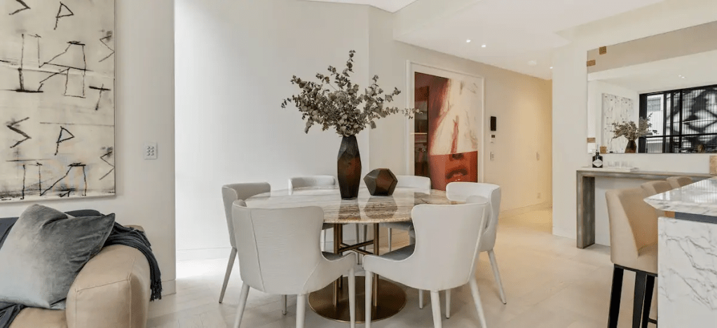 - Private rooftop entertaining area Marble benchtop and splashback in the kitchens