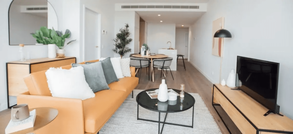 The interior design of the residences draws on the beauty of stone and the warmth of timber to create a naturally opulent living space. Plush carpeting, brushed brass accessories and tapered joinery adds to the effortless luxury of every home.