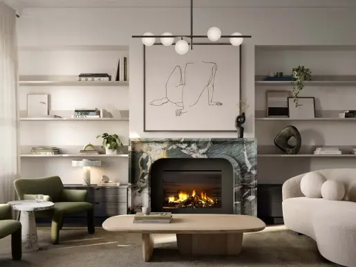 Inspired by Paddington’s history and the era of craftsmanship, The Modern Collection invites with rich timber floors, bespoke joinery, and bronze accents. A setting of rare serenity. Limited-edition living for the fortunate few. Original features weave throughout The Heritage Collection. Fluted glass; ceiling rosettes. Echoes of Paddington’s storied past, now poised for a beautiful new chapter. Complete with ornate fireplace and period features, including ceiling rosette, original grand arch windows, and built-in banquette.